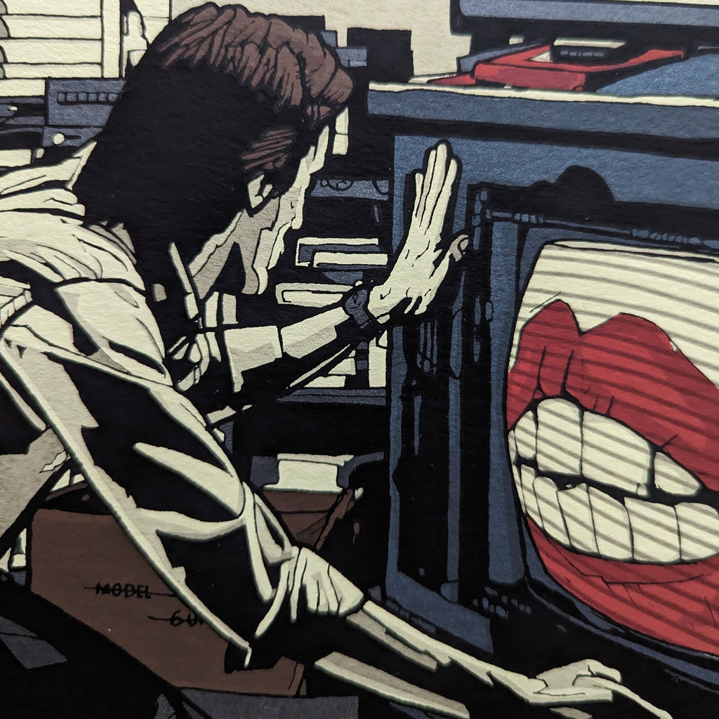 This is a limited edition screen print for David Cronenberg's Videodrome by N.E. (New Flesh).
